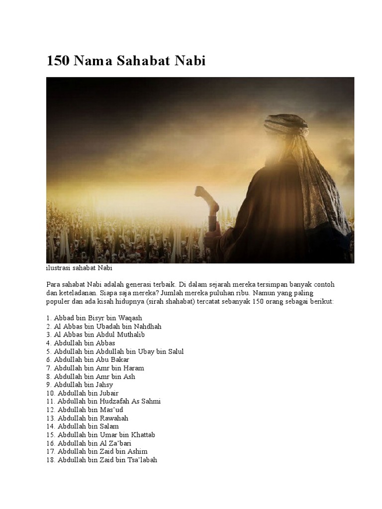 Nama Bayi Islam Sahabat Nabi Beliau merupakan khalifah pertama setelah rasulullah wafat. Memberikan nama yang baik juga dipengaruhi oleh niat. Anda bisa mengambil nama para sahabiyah ini menjadi nama bayi perempuan. Namun nama berdasrakan sahabat nabi masih dimana berikut telah disiapkan pilihan nama bayi perempuan sahabat nabi dan artinya yang terbaru. Kumpulan nama bayi laki laki perempuan dan arti, 2 kata 3 suku kata, unik dan keren, turki, rusia, arab, sansekerta, italia terbaru 2020.